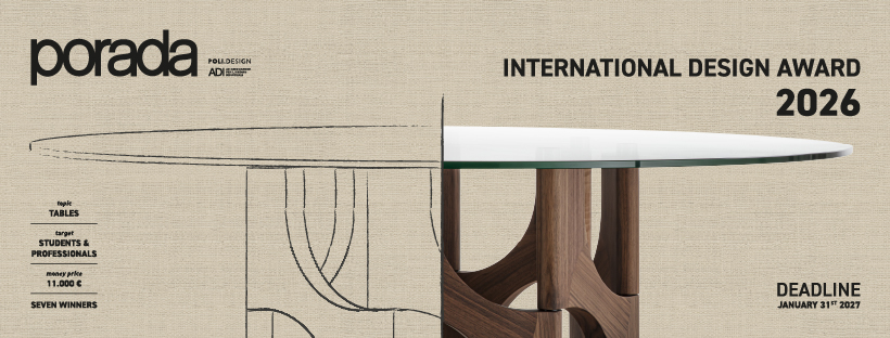 Le Porada International Design Award 2026 est officiellement ouvert : les candidatures – axées sur le thème du TABLES – doivent être envoyées au plus tard le 31 janvier 2027 à minuit.