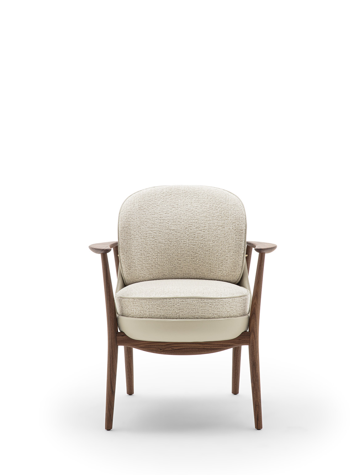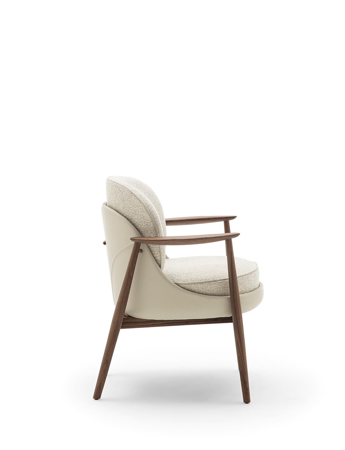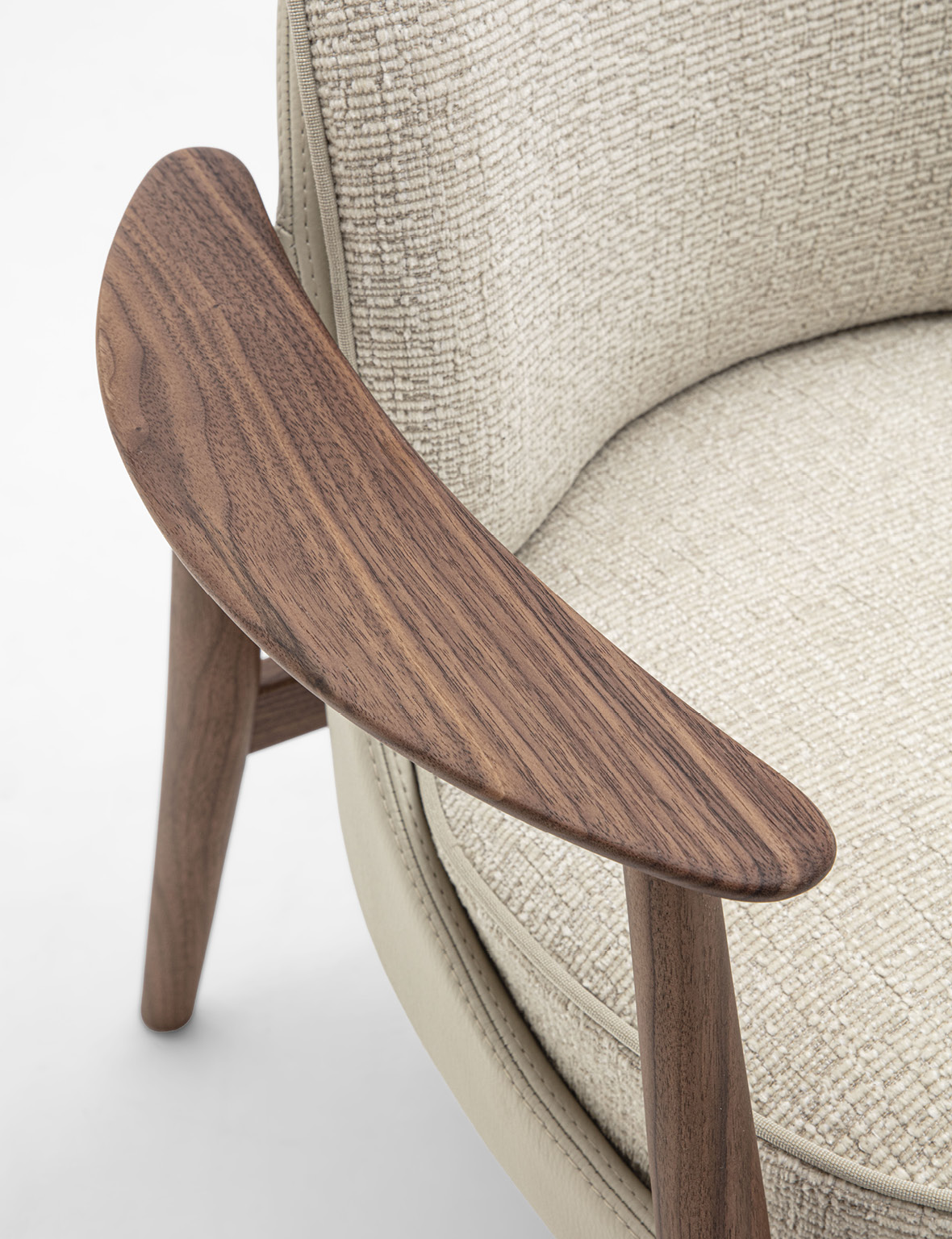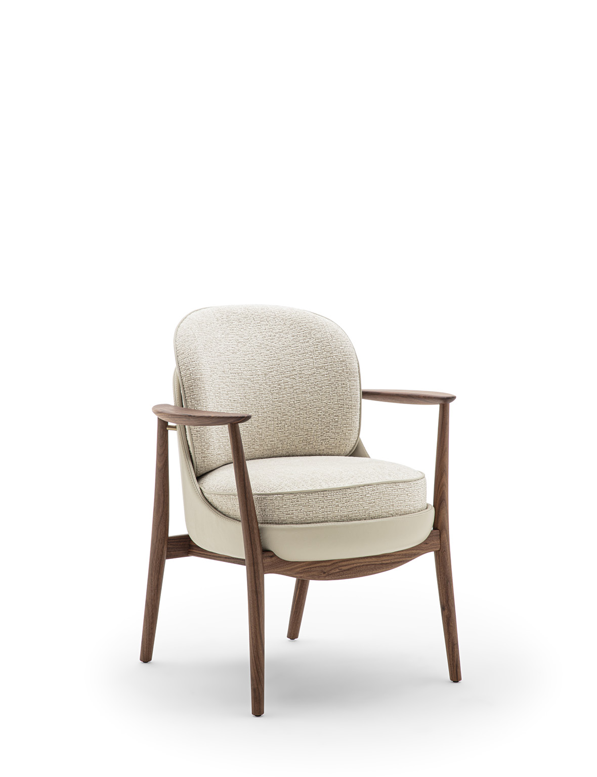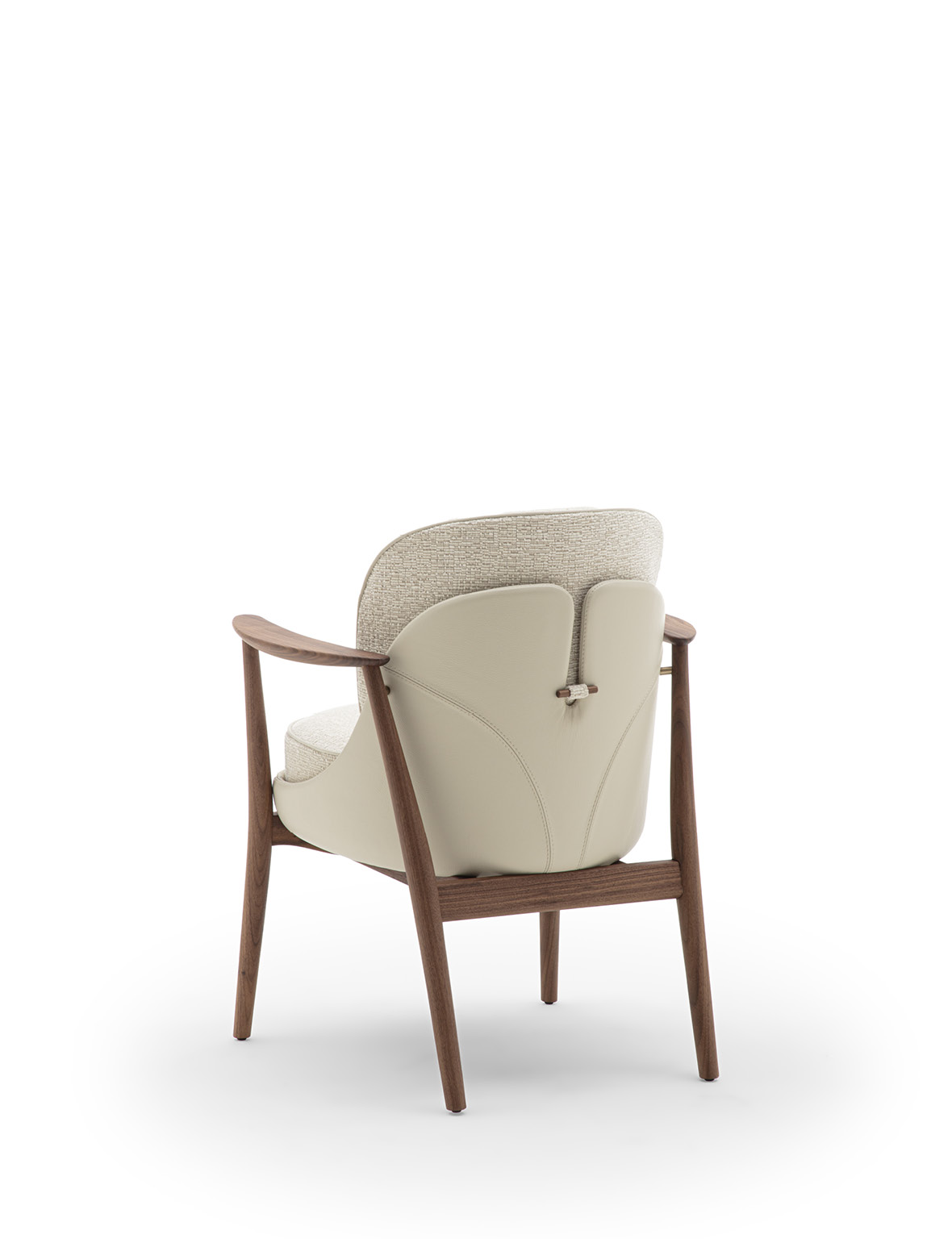 Biloba rappresenta una nuova evoluzione della collezione Ginkgo: nata dalla progettualità delle poltrone Ginkgo e Ginkgo XL, Biloba amplia la linea con una seduta dedicata alla zona dining. Biloba riprende il linguaggio estetico e i tratti distintivi della famiglia, reinterpretandoli in proporzioni più contenute e slanciate, studiate appositamente per l’utilizzo in accostamento ad un tavolo da pranzo. Pur mantenendo le caratteristiche formali che contraddistinguono la collezione – linee morbide e avvolgenti ed equilibrio tra comfort ed eleganza – Biloba si distingue per una configurazione più compatta, con seduta e schienale tecnicamente progettati per offrire sostegno duraturo durante lunghi momenti di convivialità. La struttura è realizzata in massello di noce Canaletta mentre la scocca esterna è in pelle. Il cuscino di seduta e lo schienale sono rivestiti nei tessuti della collezione e sono sfoderabili, consentendo un’ampia possibilità di personalizzazione e una immediata cura del prodotto. L’imbottitura della seduta è realizzata a quote differenziate per garantire un alto livello di comfort, mentre lo schienale è sagomato in poliuretano espanso. Il cordonetto, che caratterizza il bordo tessile, può essere realizzato tono su tono con la scocca esterna oppure nei colori della collezione Zenith, enfatizzando la cura sartoriale e il dinamismo del progetto. L’estetica di Biloba è completata, sul retro, dal caratteristico alamaro in legno nella stessa tonalità della struttura.