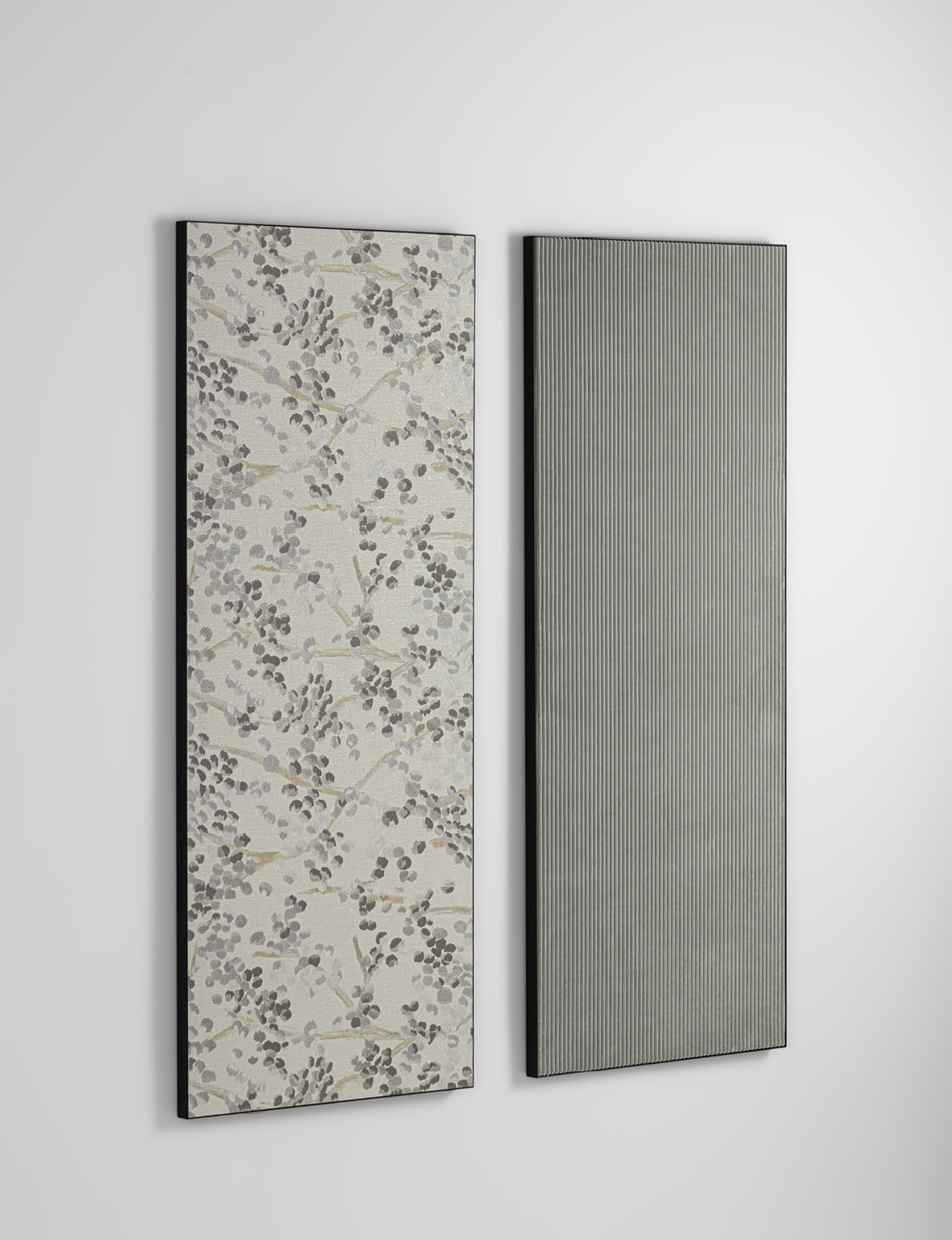 Galette is a collection of decorative wall panels that transforms the wall into an expressive surface, where materials, colors, and textures interact in harmony. More than simple decorative elements, these panels become true design accents, capable of defining the atmosphere of a space with elegance and personality. The slim metal frame encloses surfaces upholstered in the fabrics of the collection or in wallpapers, including the new Ukiyo, creating compositions rich in depth and visual appeal. Available in three standard sizes and also custom-made, Galette decorative panels offer maximum compositional freedom, allowing for unique configurations, whether standalone or modular.