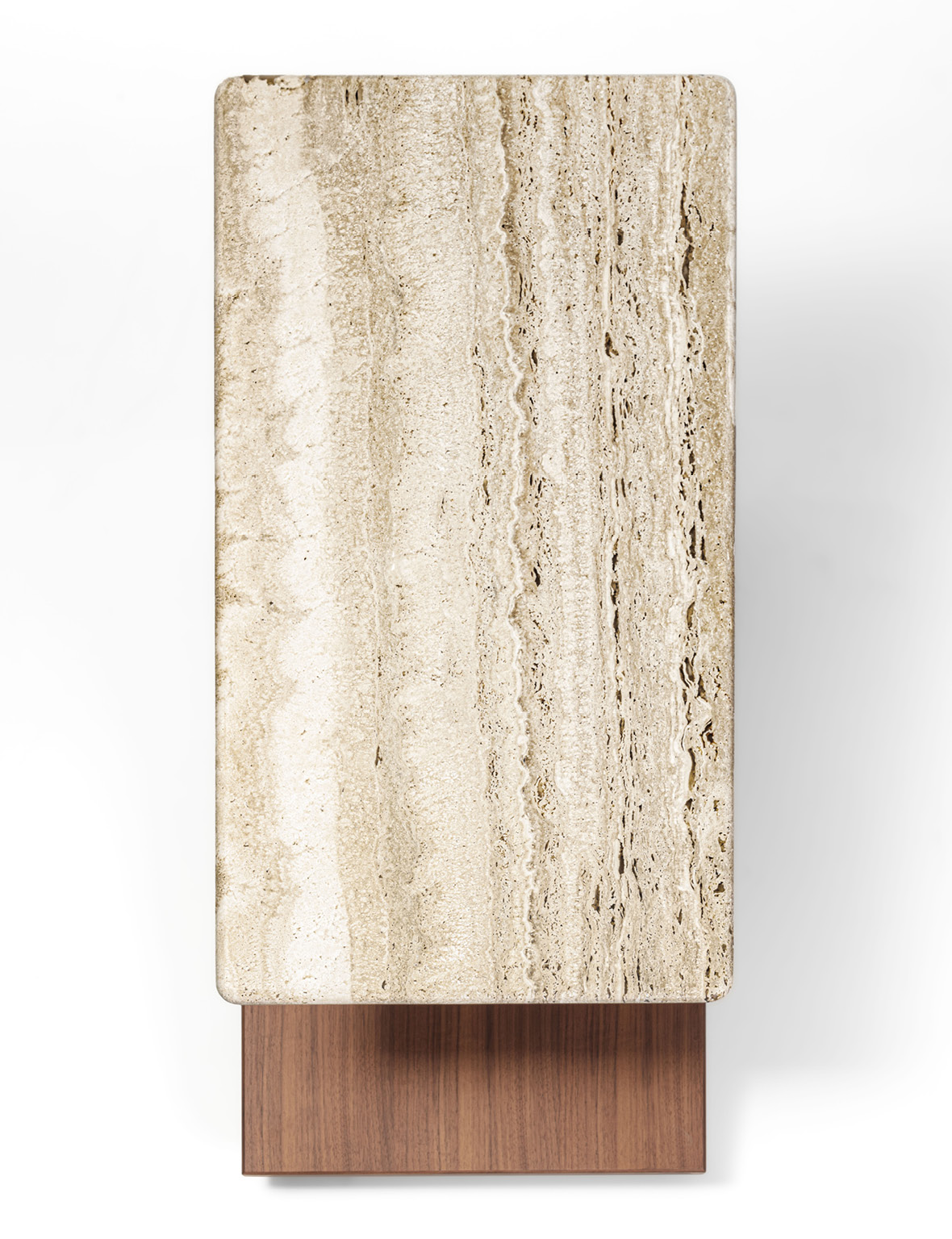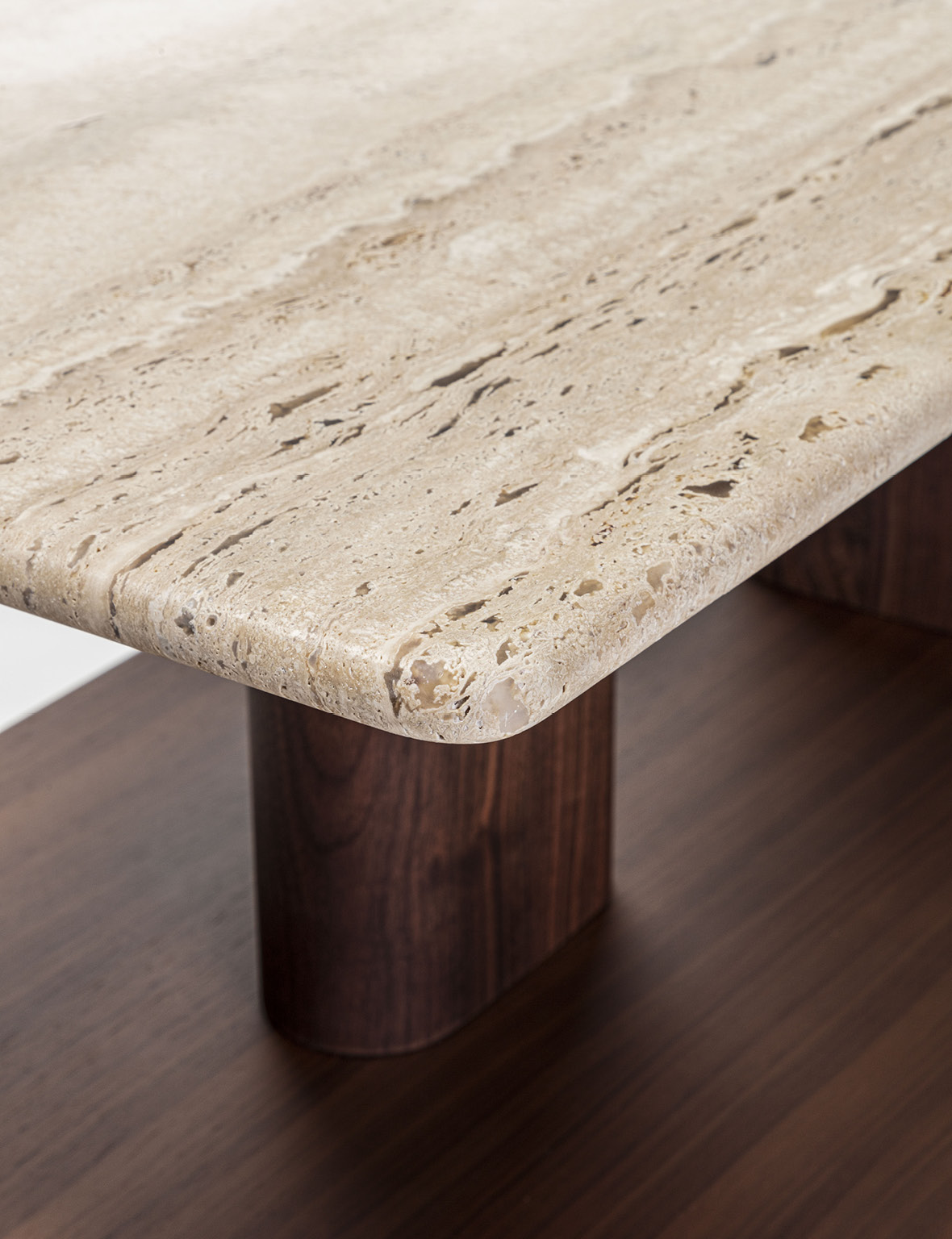 Supports in solid canaletta walnut and top in solid canaletta walnut or marble.