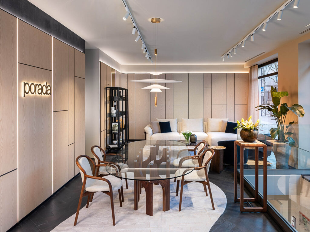 With its recently completed restyling, the showroom has been revamped and now adopts the brand identity that distinguishes the flagship stores in New York and London. A new layout, with attention to the smallest details, introduces warmer and more enveloping atmospheres that convey a feeling of comfort and intimacy, translating Porada's concept of home into a sensory experience.